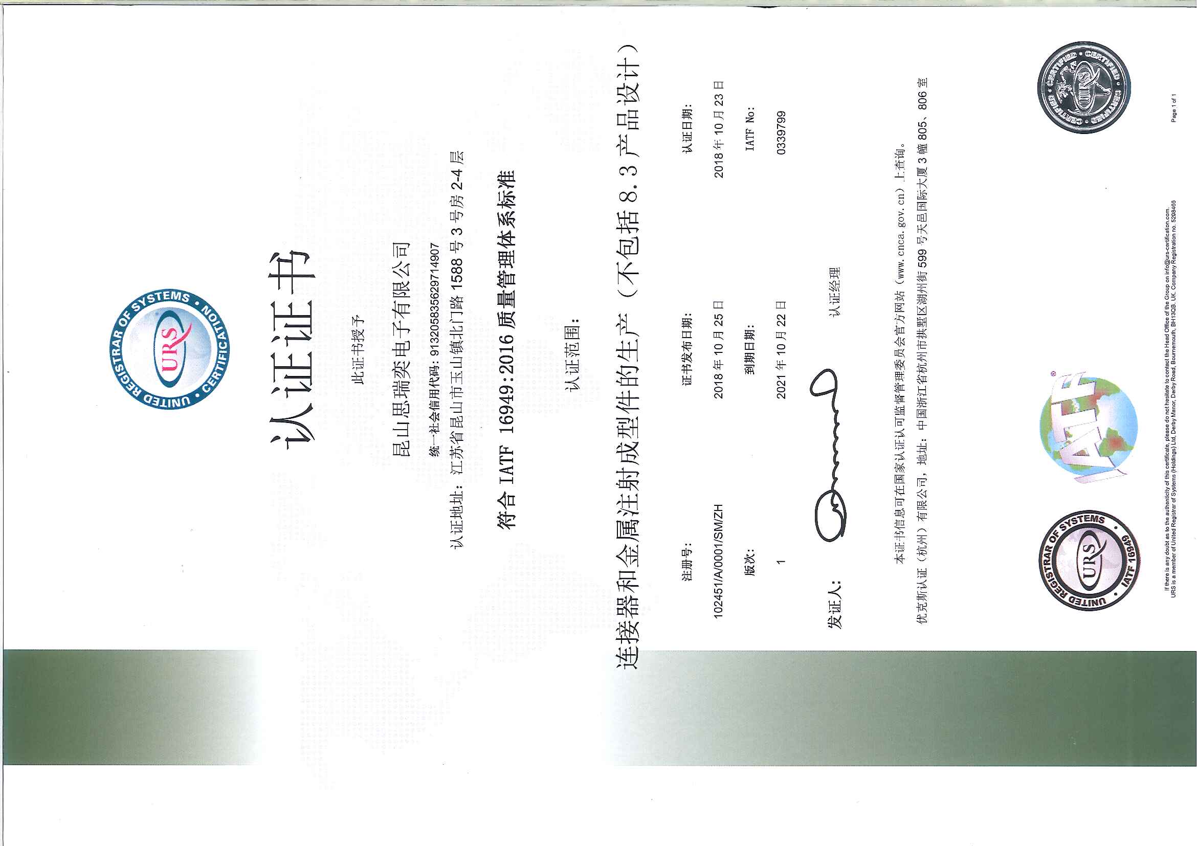 思瑞奕電子有限公司成立于2010年10月,注冊(cè)資金7500萬(wàn)人民幣,總部位于江蘇省昆山市,在重慶、江蘇東臺(tái)、江蘇太倉(cāng)設(shè)有分廠,公司于2011年通過(guò)ISO9001/ISO14001認(rèn)證,2013年通過(guò)高新技術(shù)企業(yè)和TS16949(IATF)體系認(rèn)定,2016年先后通過(guò)知識(shí)產(chǎn)權(quán)管理體系認(rèn)證、安全生產(chǎn)標(biāo)準(zhǔn)化認(rèn)證,2017年獲頒江蘇省民營(yíng)科技企業(yè)、2018年先后獲得蘇州市人民政府認(rèn)定企業(yè)技術(shù)中心、科技部認(rèn)定中小型科技企業(yè)、江蘇省最具成長(zhǎng)性高科技企業(yè)、2020年獲得江蘇省人民政府認(rèn)定企業(yè)技術(shù)中心、2021年獲得蘇州市瞪羚計(jì)劃入庫(kù)企業(yè)、江蘇省省級(jí)工程技術(shù)研究中心、江蘇省專精特新中小企業(yè)等榮譽(yù)稱號(hào)......